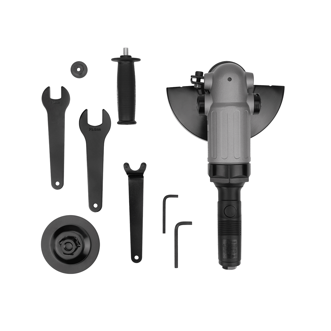 - Шлифмашина с цанговым патроном на 6 мм. Реализован отвод воздуха назад. Имеется рычаг блокировки от случайного запуска. Угловые шлифовальные машины — аналоги известных «болгарок». Основное предназначение — резание и черновое выравнивание поверхностей. Для этих целей используются абразивные диски.