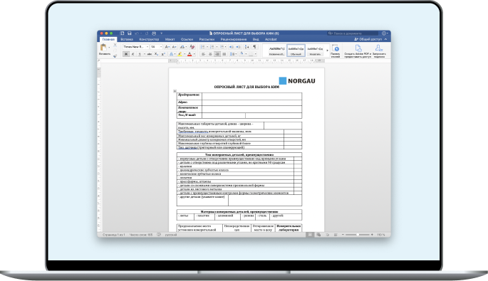 Опросный лист для конфигуратора КИМ